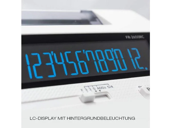• Large display: Thanks to a 12-digit LC display with backlight and the practical thousands of divisions, the calculation results of the Casio FR 2650RC are perfectly readable.