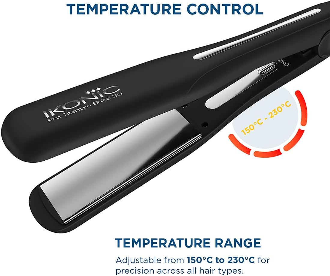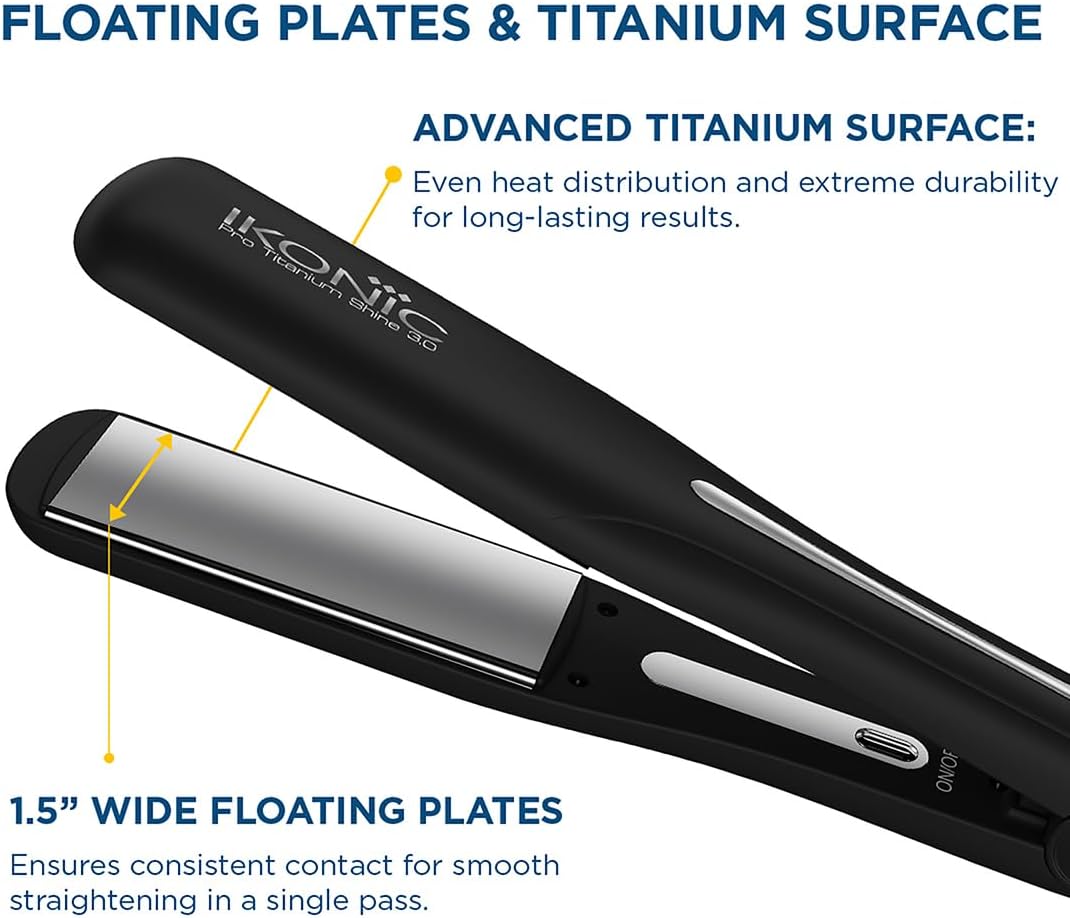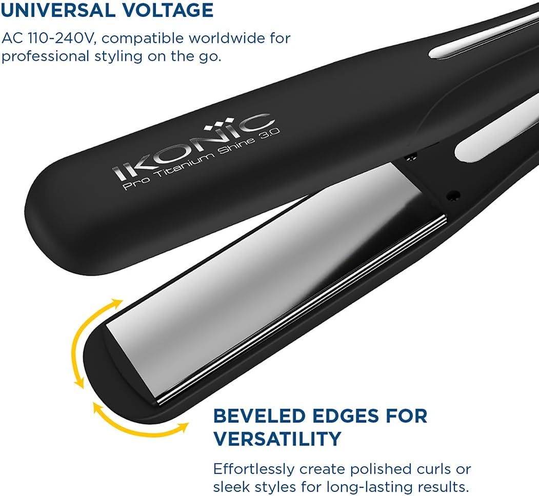 Ikonic Pro Titanium Shine 3.0 Hair Straightener Black with Advanced Professional Dual Titanium Floating Plates, Auto Shut off function, Instant Heat up, Universal Voltage