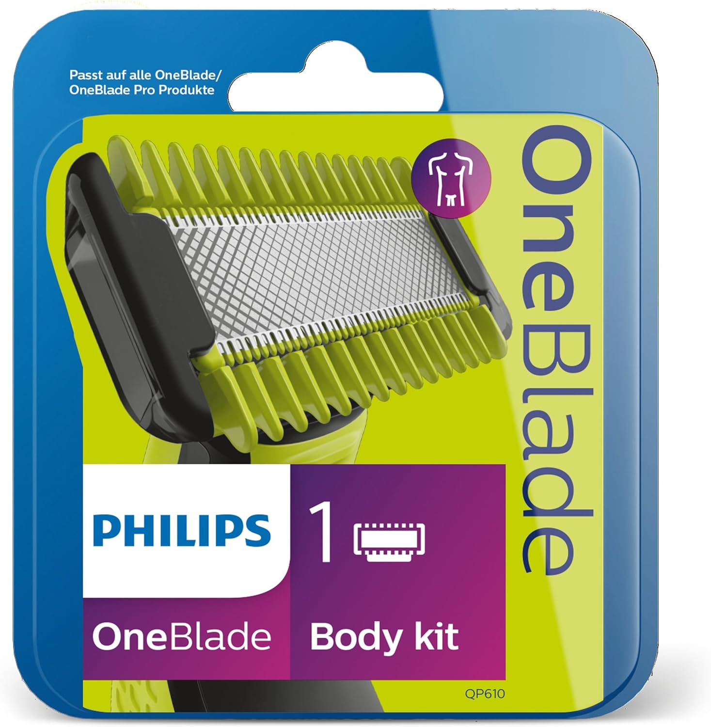 The Philips OneBlade replacement blade trims, edges, and shaves any length of hair, even on body. This replacement pack includes one blade for your face or body, plus a skin guard for sensitive areas and a body comb. It is compatible with all OneBlade, OneBlade Face Body, and OneBlade Pro handles. Forget about using multiple tools. OneBlade does it all.